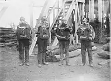 Investigation team wearing 'Proto' breathing apparatus (May 1920). (State Library of NSW)[43]