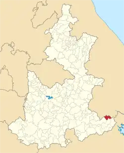Eloxochitlán is a municipality located in the southeastern part of the state of Puebla in Mexico. In the town there is a high rate of indigenous population: about 44%.