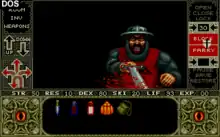 When faced with an enemy, the gameplay mode will switch to combat mode. How well the player does defeating an opponent, depends on various conditions. Strength increases damage done, Resilience helps the player withstand damage, Dexterity increases the chance to hit the opponent, Skill helps the player make better use of weapons and shields and Life is how many hit points the player has before being killed by an enemy. Better swords and shields improve the player's fighting and defensive abilities. When attacking an enemy, the player must choose and time well a hack or slash attack. When defending from enemy blows, the player must choose and time well a block or parry move to avoid taking damage. Killing an enemy raises both experience and statistics.