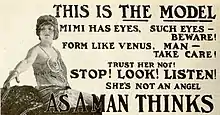 A print advertisement for As a Man Thinks (1919), describing the seductive model character played by Amazar