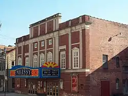 The Embassy Theatre is a historic theatre building located on South Main Street in Lewistown, Mifflin County, Pennsylvania. It is a 1927 motion picture / vaudeville theatre, and is an excellent surviving example of theatre architecture of the 1920s. The original National Theatre building was built in 1916, and gutted in 1927 to be rebuilt as the Embassy. The front facade features eclectic Colonial Revival details. It has a rectangular marquee measuring 33 feet, 6 inches, by 10 feet, 6 inches, overall.[2] The theatre closed in 1981, and is currently non operational and is undergoing restoration.