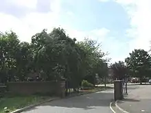 A new school was built after the war on farmlands extending from Wych Elm Road down to the River Ingrebourne,[5] providing a large playing field area. The school was opened in September 1954, renamed Hornchurch Grammar School, and originally with 560 students.[4] On 13 April 1964, the prime minister gave a talk at the school, and later in the year on 27 July the (new) prime minister also visited the school.[Note 1]