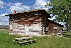 The house was built using the "butt and pass" method of log construction, a kind of false notching, utilizing D-shaped milled logs presumably from the local Bighorn Mountains.[2]