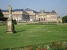 In May 1748, du Châtelet began an affair with the poet Jean François de Saint-Lambert and became pregnant.[21] In a letter to a friend, she confided her fears that she would not survive her pregnancy. On the night of 4 September 1749 she gave birth to a daughter, Stanislas-Adélaïde. Du Châtelet died on 10 September 1749 [22] at Château de Lunéville,[23] from a pulmonary embolism. She was 42. Her daughter died 20 months later.[24]