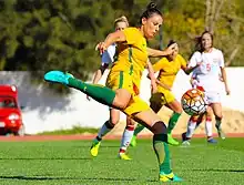 ![]() Gielnik playing for the Matildas at the 2017 Algarve Cup | |||