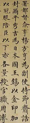 During the Tang dynasty, Japanese rulers were conferred the title King of Japan (日本國王).[18] In 894, Japan stopped sending envoys to the Tang dynasty.