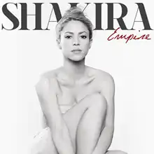 In December 2013, Sony Music Entertainment reported that Shakira's new single would be released in January 2014, and that it was supposed to be a duet with Barbadian recording artist Rihanna.[4] On 13 January 2014, "Can't Remember to Forget You" was released and indeed featured Rihanna.[5] On 24 February 2014, Popjustice announced that "Empire" would be the album's second single.[6] The cover art features Shakira in a white strapless dress and hair pulled back. Shakira also premiered the track on Vevo on the same day,[7] and it was offered as a free download with a pre-order of Shakira.[8] Shakira's official Facebook page announced it as the second single from the album.[9]