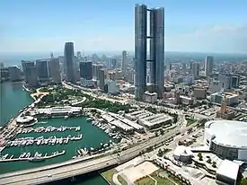 The Empire World Towers were two proposed supertall skyscrapers to be built in Miami, Florida in the United States. The complex consists of the Empire World Tower I and the Empire World Tower II. If completed, both towers would stand at 1,022 feet (312 m), with 93 stories each. They would surpass the Panorama Tower and become the city and state's tallest buildings, since the approved One Bayfront Plaza had been reduced to a height of 1,010 ft. The towers were not built, but in 2023 the supertall Waldorf Astoria Miami began construction on the same block at 300 Biscayne Boulevard.