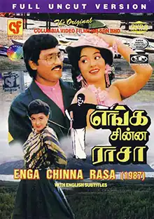 Enga Chinna Rasa (transl.Our little King) is a 1987 Indian Tamil-language drama film written, directed by, and starring K. Bhagyaraj. The story was inspired by the Kannada novel Ardhaangi by B. Puttaswamayya. It was released on 17 June 1987.[1] The film was remade in Telugu as Abbayigaru, in Hindi as Beta, in Kannada as Annayya.[2] and in Odia as Santana.