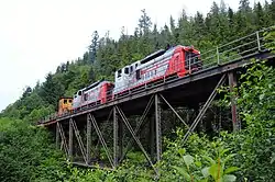 Englewood Railway was a logging railroad on northern Vancouver Island, Canada. Headquartered in Woss, British Columbia, the line ran 90 km (56 mi) from Vernon Lake, through Woss, and past Nimpkish Lake Provincial Park to Beaver Cove. It was the last operating logging railroad in North America.[1][2] After 100 years of use, railway operations ceased on November 7, 2017, following a deadly derailment in April of that year.[3][4]