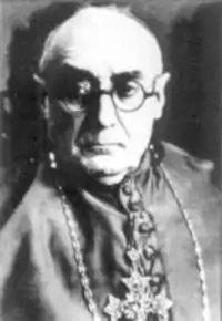 Enrique Pla y Deniel (December 19, 1876 – July 5, 1968) was a Spanish cardinal of the Roman Catholic Church. He came from a rich Barcelona family and trained at the local seminary and the Gregorian University in Rome before an early career in journalism and seminary teaching. He took possession of the Salamancan see in 1935. "His seven years in Salamanca, from where he played a crucial role in the construction of General Franco's crusade, were rewarded with elevation to the primatial see of Toledo".[1] He served as Archbishop of Toledo from 1941 until his death, and he was elevated to the cardinalate in 1946 by Pope Pius XII.