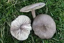 Entoloma porphyrophaeum is a species of agaric (gilled mushroom) in the family Entolomataceae. It has been given the recommended English name of Lilac Pinkgill.[2] The species has a European distribution, occurring mainly in agriculturally unimproved grassland.[1] Entoloma porphyrophaeum has been reported from North America, but at least some of these reports represent a distinct species, Entoloma canadense.[3] Threats to its habitat have resulted in the Lilac Pinkgill being assessed as globally "vulnerable" on the IUCN Red List of Threatened Species.[1]