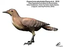 Eogranivora is a bird genus, belonging to the Ornithuromorpha, that lived in the area of present-day China during the Early Cretaceous. Its type species is Eogranivora edentulata.[1]