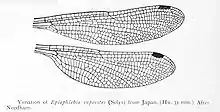- ↑ Fraser, F. C. (2009-04-02). "A Note On The Polymorphic Venation Of Epiophlebia Superstes (Selys) (Odonata) And Its Phylogenetic Importance". Proceedings of the Royal Entomological Society of London. Series A, General Entomology. 13 (10–12): 155–157. doi:10.1111/j.1365-3032.1938.tb00475.x.