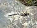 The shrimp-like prolarva has a sharp tail edge and needs around 120 seconds to exit the egg, emerging from the plant, to then jump off the plant and into the water.[4][2] Several minutes after reaching the water surface, after a period longer than that of most other dragonflies,[4] the prolarval exuvia is cast and the first instar larva sinks to the stream bed.[4]