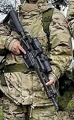 Carbine | 5.56x45 mm NATO | Standard service rifle of the navy built for the close quarters of a ship. Low quantities are present in the army and talks of wider issuing for vehicle crews are ongoing. | ||