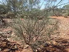 - Eremophila oppositifolia subsp. rubra (C.T.White & W.D.Francis) Chinnock [12] has leaves that are flat and 3–7 mm (0.1–0.3 in) wide.[2]