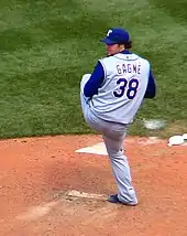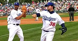 On February 18, 2010, Gagné agreed to a minor league contract with the Los Angeles Dodgers with an invite to spring training.[41] Dodgers reliever Ramón Troncoso, remembering Gagné's mentorship of young pitchers such as himself during Gagné's earlier stint with the Dodgers, "had no problem" releasing to Gagné his old uniform number 38.[42] Gagné made three Spring training appearances with the Dodgers, allowing six runs on eight hits in 2+23 innings, for a 20.25 ERA. On March 15, he was reassigned to minor league camp, acknowledging that he needed more work to bring his game back to the Major League level.[43] After appearing in just one minor league intra-squad game after his demotion, on March 21, Gagné asked for and was granted his release from the Dodgers, with the hope that he could find another opportunity with another team.[44] However, he announced his retirement on April 18, 2010.[45]