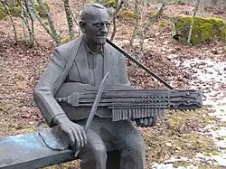 Eric Sahlström is one of those who most contributed most to the renaissance of the nyckelharpa ("key fiddle") in modern times.[2] The instrument at that point had some small popularity amongst a handful of musicians in Uppland, but Sahlström as a design engineer and luthier further developed the instrument,[3] including refining the chromatic nyckelharpa which can play any key. He also composed a large number of folk songs. Among the most famous include the waltz Spelmansglädje ("Fiddler Joy") and the polskas Stormyren and Hardrevet.[4]