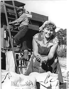 Schutt's career as a photo-journalist began in 1952 when he was approached by a local newspaper editor and accepted an invitation to become a part-time photo-reporter for the Brandenburgische Neueste Nachrichten. His first commission involved a visit to a garden festival at Forst, since 1945 a border town, some 35 km / 20 miles to the east, beyond Cottbus. The route was nevertheless relatively level, which was important for a photo-journalist whose sole means of travel was his bicycle. The recently launched Brandenburgische Neueste Nachrichten was a stand-alone and modestly equipped publication, and on getting home to Vetschau later that day Schutt went straight back to the photography department of "Spreewald-Drogerie Petzold", the specialist shop where he was employed, in order to develop his film and print off the pictures, which he was able to deliver to his editor's desk the next day.[4][7] He was helped in this task by a colleague who soon became his wife. After they set up home together and Schutt became a full-time press photographer, films were developed at home and the pictures were dried off not in a photo-laboratory at the back of a shop, but in their own family kitchen.[8] Things changed after the Lausitzer Rundschau relocated its operations to Cottbus during the second half of 1952, even if the role of a staff "photo-journalist" remained somewhat "niche" among regional newspapers in the "German Democratic Republic" for many years. The Brandenburgische Neueste Nachrichten had been launched as the local newspaper of the "National Democratic Party" (NDPD), a "bloc party" permitted to exist as a component of the tightly controlled East German "National Front" party grouping, whereas the Lausitzer Rundschau, as the local mouthpiece for the ruling Socialist Unity Party (SED) was much better resourced. During or before 1953 Schutt switched to the Lausitzer Rundschau, becoming the newspaper's first - and for some time its only - full-time press photographer. During more than four decades with the "Rundschau" Erich Schutt emerged as one of the best known press photographers in east Germany. He remained a member of the newspaper's staff till his retirement at the age of 63.[3][8][9]
