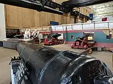 The Erie Maritime Museum is housed inside the former Penelec Front Street Station. From 1917 until the 1980s, the building was used to generate Erie, Pennsylvania's electricity and steam heat.[2] Inside were five coal-fired steam generators. Remnants of Penelec's presence on the property can be found to this day. Visitors to the museum can view the original smoke stack which rests to the west of the parking lot. Additionally, once inside, guests are able to view a General Electric steam-powered generator and the station's original crane, which still works today.[4] When Penelec decided to shut down their Front Street operation, the goal was to tear down the structure. Plans changed after local officials convinced Penelec to save the building for future use.[2]