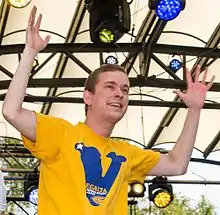 ![]() Niva celebrating the U21-Team footballers in Kungsträdgården (2015) | |