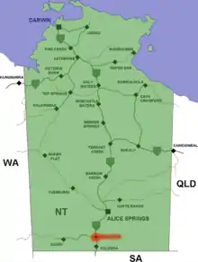 Erldunda is a pastoral lease that operates as a cattle station 200 km (120 mi) south of Alice Springs in the Northern Territory of Australia.[1]
