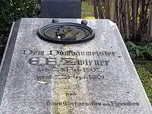 Zwirner's best building is probably the church of St. Apollinaris at Remagen,[3] to which, however, the same objection of monotony of plan has been made. He also built a church at Mülheim on the Rhine, and one at Elberfeld. He restored the castle of Argenfels on the Rhine, built the castle of Herdringen in the style of the ancient fortress castles on the Rhine for Count von Fürstenberg, and also the Moyland Castle near Cleves. He designed a mausoleum for the family of Count Ernst Zur Lippe-Biesterfeld on the grounds of the Klosterruine Heisterbach near Königswinter, and built the Rathaus (Town Hall) in Kolberg, Pomerania.[4] His last work was the magnificent, 1861 Moorish Revival Glockengasse Synagogue at Cologne. He died at Cologne in 1861. He is buried in the Melaten-Friedhof.[2]
