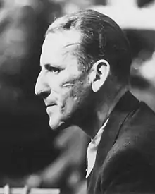 On 12 March 1945, a meeting took place in Vorarlberg between Kaltenbrunner and Carl Jacob Burckhardt, president of the International Committee of the Red Cross (1945–48).[41] Just over a month later, Himmler was informed that SS-Obergruppenführer (general) Karl Wolff had been negotiating with the Allies for the capitulation of Italy.[42] When questioned by Himmler, Wolff explained that he was operating under Hitler's orders and attempting to play separate Allies against one another. Himmler believed him,[43] but Kaltenbrunner did not, and told Himmler that an informant claimed that Wolff had also negotiated with Cardinal Schuster of Milan and was about to surrender occupied Italy to the Allies.[44] Himmler angrily repeated the allegations; Wolff, feigning offence, challenged Himmler to present these statements to Hitler. Unnerved by Wolff's demands, Himmler backed down, and Hitler sent Wolff back to Italy to continue his purported disruption of the Allies.[lower-alpha 4]