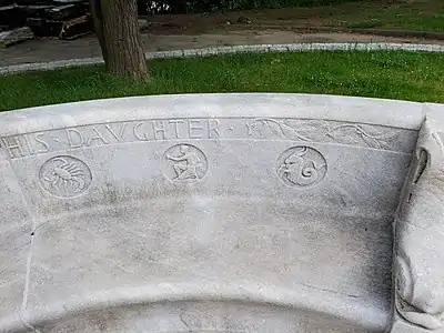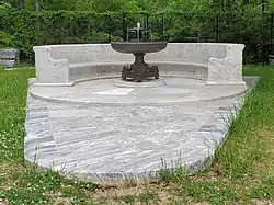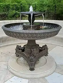 The fountain was built to honor John Erskine, a Federal judge from Atlanta who died in 1895.[1] The fountain, which cost $15,000 to build, was a gift from Erskine's daughter to the city of Atlanta and was dedicated by Mayor Porter King on May 2, 1896.[2] It was the first public fountain in Atlanta.[3] The fountain was originally placed at what is now Hardy Ivy Park, at the diversion of Peachtree Street and West Peachtree Street.[2] The fountain replaced a statue of Benjamin Harvey Hill,[4] which was moved from the location to the Georgia State Capitol, where it still stands.[1] The fountain and accompanying bench were designed by J. Massey Rhind and feature an ocean theme, along with inscriptions of the Zodiac signs.[1] The lower bowl of the fountain originally had bronze cups attached with chains to allow people to drink from it, though these have since been removed.[2]