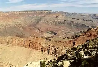 | Type of rock | Coconino Sandstone-(prominence), Hermit Shale, Supai Group-(eroded ridgeline), Redwall Limestone, Muav Limestone, Bright Angel Shale |