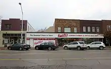 When Escanaba was first platted in 1864, it was anticipated that First Avenue would be the city's primary thoroughfare. However, as the city grew, Ludington quickly became the primary commercial district, and businesses built along this street. The initial placement of buildings was scattered around the eastern end of Ludington, but by 1884 the blocks from 2nd through 7th streets were densely populated. By 1894, the densely developed portion of the commercial district generally extended through 8th Avenue, but scattered commercial frame buildings existed in blocks further west up to 14th Street. Most of this western section, though, was residential. By 1906, commercial buildings were infilling lots through to 13th Street. By this time, industrial and manufacturing companies were moving into the 1700 block, with Richter Brewing Co., the Escanaba Electric Street Railway, and sleigh manufacturer R. P. Linn Company in existence. By the 1920s, services stations, auto dealerships, and other automotive related businesses appeared along Ludington.[2]