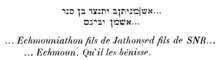 - ↑ Clermont-Ganneau, Dédicace phénicienne à Echmoun provenant de Sidon, Receuil d’Archéologie Orientale 5, 1903, 34-35: “On a transporté, il y a quelque temps, au Musée de Constantinople, un fragment d’inscription phénicienne qui aurait été trouvé parmi les fameuses inscriptions du temple d’Echmoun récemment découvert auprès de Sidon. Le P. Lagrange vient de le publier d’après une simple copie, et seulement en transcription…”