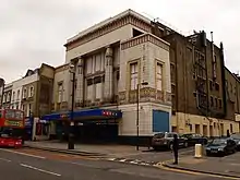 The Carlton Cinema was at Nos. 161-169. It was built in 1930 in an art deco style by George Coles, using an Egyptian style facade. It was subsequently used as a bingo hall, and then a place of worship. The building is Grade II* listed.[7]