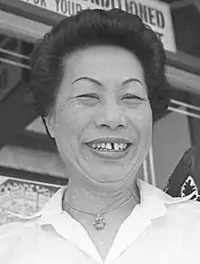 Esther Wong was born in Shanghai in 1917. Her father had been an automobile importer, and she had been well-educated and well-traveled before emigrating to the United States in 1949 to escape the Communist takeover of China. She worked as a clerk for a shipping company for 20 years before opening Madame Wong's (黃家園), a Los Angeles Chinatown restaurant with a floorshow—originally at 949 Sun Mun Way, located in the original 1938 Rice Bowl restaurant.[1]