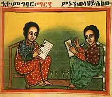 Aside from epigraphy, Aksumite historiography also includes the manuscript textual tradition. Some of the earliest Ethiopian illuminated manuscripts include translations of the Bible into Ge'ez, such as the Garima Gospels that were written between the 4th and 7th centuries and imitated the Byzantine style of manuscript art.[17][18] The Aksum Collection containing a Ge'ez codex that provides chronologies for the diocese and episcopal sees of the Coptic Orthodox Church of Alexandria in Roman Egypt was compiled between the 5th and 7th centuries.[17] These texts reveal how the Aksumites viewed history through the narrow lens of Christian chronology, but their early historiography was perhaps also influenced by non-Christian works, such as those from the Kingdom of Kush, the Ptolemaic dynasty of Hellenistic Egypt, and the Yemenite Jews of the Himyarite Kingdom.[7]