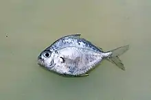 Eubleekeria jonesi, commonly known as Jones’s pony fish, is a marine rat-finned fish, a ponyfish from the family Leiognathidae. It is native to the Indian Ocean.[1] This species was first formally described as Leiognathus jonesi in 1971 by the Indian ichthyologist P.S.B.R. James (1934-2019) and its specific name honours James’ predecessor as director of the Indian Central Marine Fisheries Institute in Kochi, Santhappan Jones (1910-1997).[2]