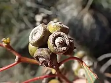9. Nicolle, Dean; French, Malcolm E. (2012). "A revision of Eucalyptus ser. Falcatae (Myrtaceae) from south-western Australia, including the description of new taxa and comments on the probable hybrid origin of E. balanites, E. balanopelex and E. phylacis" (PDF). Nuytsia. 22 (6): 447–448. Retrieved 11 March 2019.