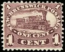 1860 New Brunswick stamp showing an E&NA engine, the first ever depicted in a postage stamp