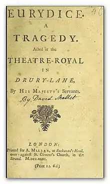 Eurydice is a 1731 tragedy by the Scottish writer David Mallet.[1] It is one of a number of plays and operas to be based on the story of Eurydice from Greek Mythology.