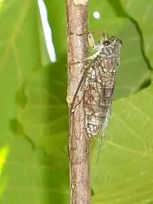 - ↑ copy not seen Hayashi, Masami (1978). "The Cicadidae (Homoptera, Auchenorrhyncha) from East and Central Nepal (Part I)". Bulletin of the National Science Museum, Tokyo, Series A (Zoology). 4: 163–195. from copy not seen Distant, William Lucas (1912). "LVI.—Descriptions of some new Homoptera". The Annals and Magazine of Natural History. 10 (58): 438–446. doi:10.1080/00222931208693257.