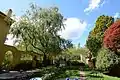 On leaving the court via the archway, a stone flagged area is crossed leading to a broad flight of shallow steps descending to the level of the terrace proper, which comprises a large smooth lawn lined with weeping Japanese flowering cherry trees. Originally the canopy of the cherries was supported on a pergola which continued at least until the 1960s. These trees have been replaced.[1]