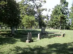Evergreen Cemetery, located at William and University Streets in Fayetteville, Arkansas, is one of the largest early historic cemeteries in the region, with burials dating to 1838. Evergreen is included in the National Register of Historic Places for its age, and because numerous important historical figures are buried there. These include Senator J. William Fulbright, Governor Archibald Yell, educator Sophia Sawyer, industrialist Lafayette Gregg, and many others.