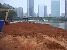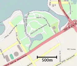 ![]() Evergreen park viewed from Haikou Bay (The top-right corner of the image shows the nearby Binhai Park.) | |