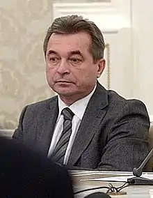From 2011 to 2012, he served as Chairman of the Board of Directors of the Russian machine building company, Uralvagonzavod.[8] On May 23, 2012, he was appointed Assistant to the President of the Russia,[9][10] where he oversaw the activities of the Presidential Administration for Civil Service and Personnel. On June 7, 2013, he was appointed by the decree of the President of Russia, the Commissioner for Anti-Corruption Inspections. According to the decree, he was "authorized to make decisions on the implementation of the inspections provided for by the regulatory legal acts of the Russian Federation on combating corruption".[11]