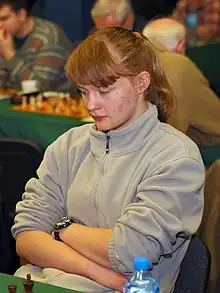 Ewa Harazińska started playing chess from the age of six. She is a five-time medalist of the individual Polish Youth Chess Championships in classical chess: 2 gold (2008 - U10 girls age group; 2013 - U16 girls age group), silver (2014 - U16 girls age group) and 2 bronze (2012 - U14 girls age group; 2015 - U18 age group). From 2008 to 2015 she participated in European Youth Chess Championships and World Youth Chess Championships and won two medals in European Youth Chess Championships: silver (2015 - girls U18 age group, shared 1st place with Nino Khomeriki[1]) and bronze (2008 - U10 girls age group).[2] In 2014, in Győr Ewa Harazińska won individual silver medal in World Youth U16 Chess Olympiad.[3]