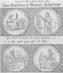 The exhibition ran from 26 February to the end of April 1885 and was located at the Queen's Villa in the Clifton suburb of Bristol. Only the work of women was exhibited, though several of the 303 exhibitors were men.[1] The works shown at the exhibition were "done by women who make a profession in their pursuit, either for art's sake, or for the sake of earning a livelihood", according to the official catalogue. While the works were often made by working class women, the exhibition prioritised the visibility of the philanthropic women hosting their works.