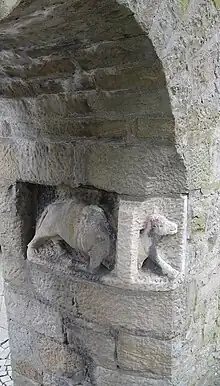 A church portal relief in Dortmund referencing Jesus's use of "camel through the eye of a needle" aphorism