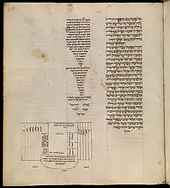 ![]() The page with a diagram to illustrate Ezekiel's vision in chapter 45 of the division of the Promised Land, from the Book of the prophets, with Rashi's commentary (late 13th century). | |
