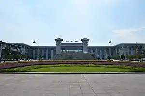 The lower, north-south platforms serve the Wuhan–Jiujiang railway. Reconstruction of the station began in 2010.[1] The faster Wuhan–Jiujiang passenger railway opened on 18 June 2014 and passes east-west, creating a cross shape.[2] Ezhou railway station sees passenger services on both lines.